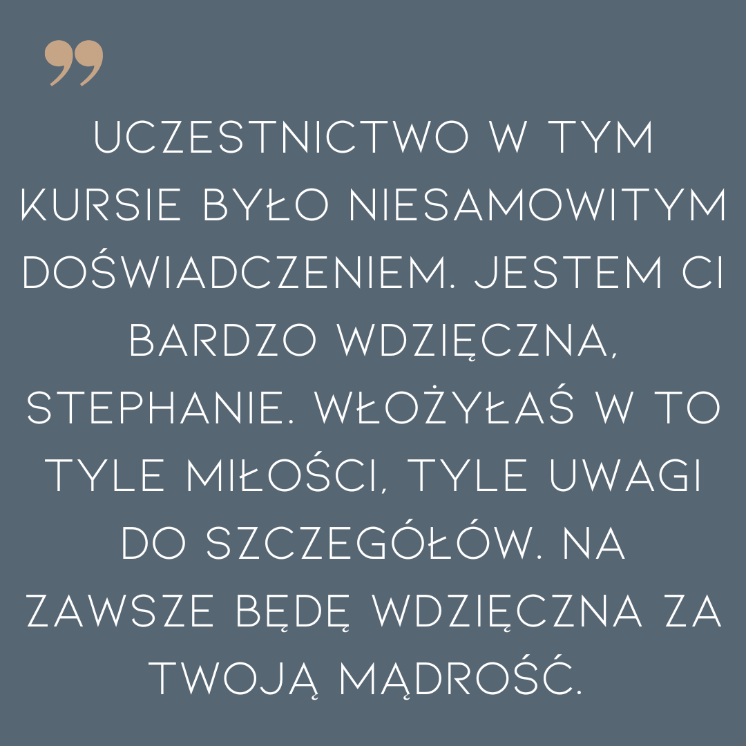 Ten kurs na zawsze zmienił sposób, w jaki wychowuję szczenięta. Tak, wymaga to więcej pracy, ale widząc, jak dobrze radzą sobie w nowych domach, wszystko staje się tego warte!”